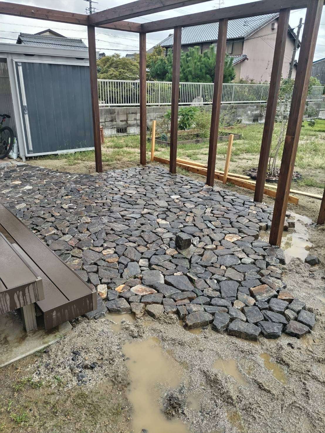 敷地が広くて落ち着ける場所がなかったので、軽い仕切りつくって小さな部屋空間をつくりました。ウッドフレームで区切り南側にはつる植物を絡ませるメッシュを取り付けました。天井にはシェードをかければ部屋感が増して落ち着ける場所になるはずです。