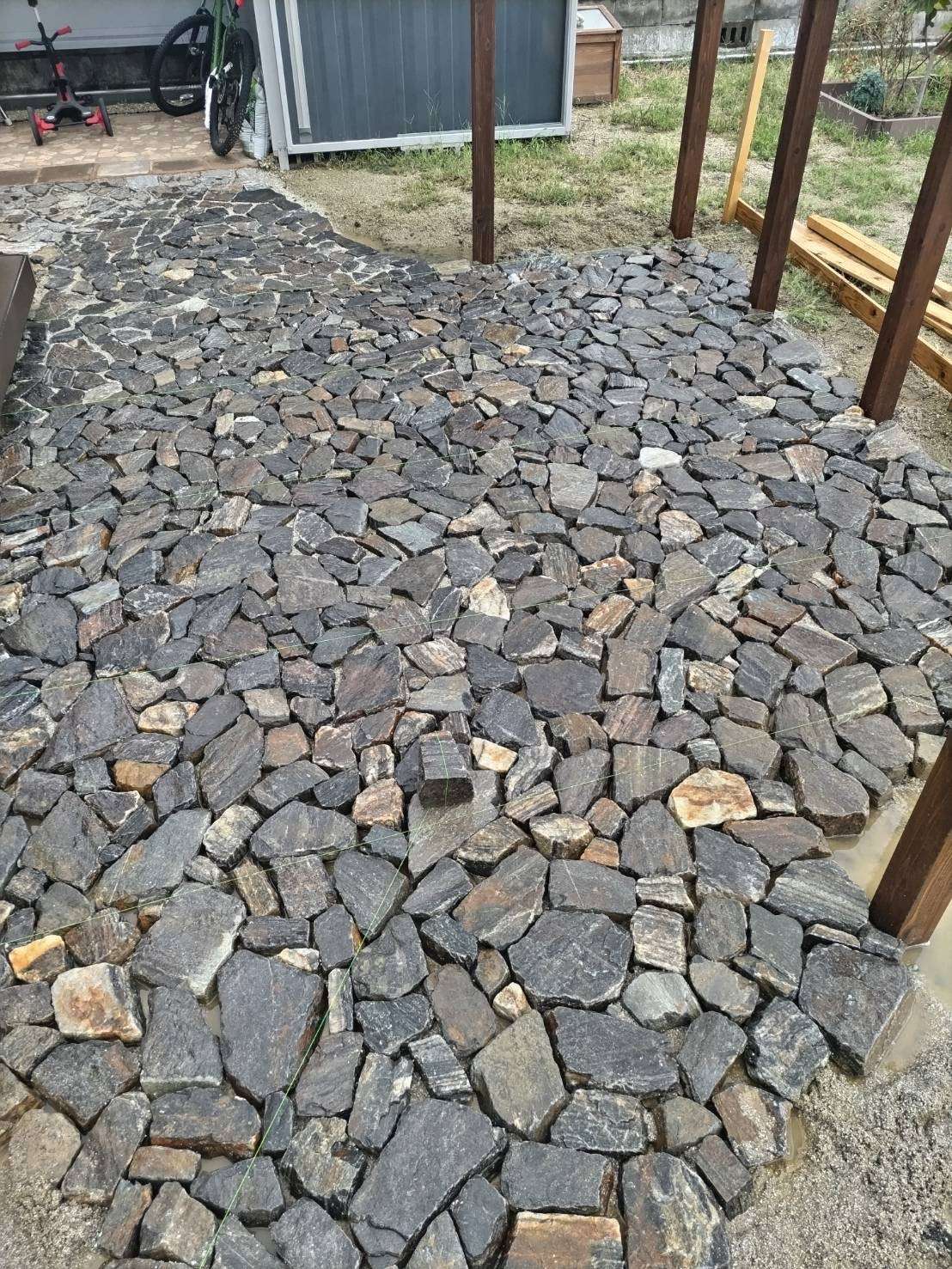 床には鹿川石を使った石敷きを採用しました。自然な風合いと飽きのこない色味があります。