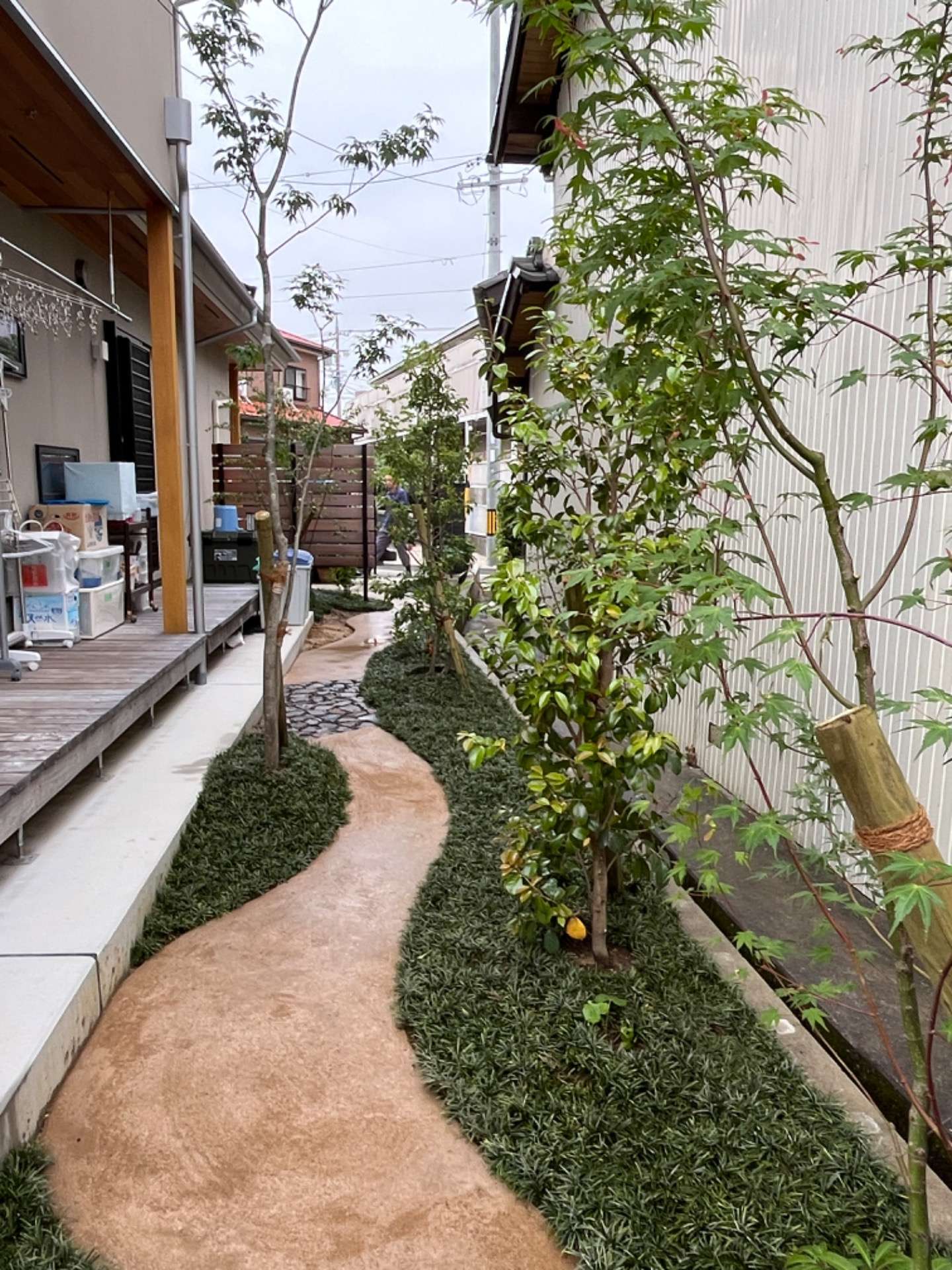 今後の雑草の手入れの負担を少しでも少なくするために土舗装の面積を多めに取り、庭にテーブルなどを置くスペースを確保することができました。