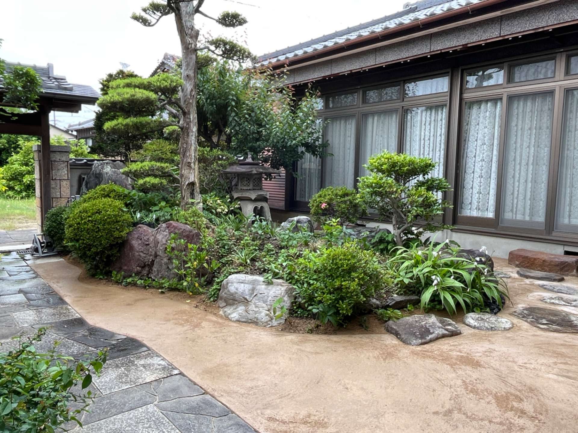 古くからある庭に手をいれつつ新しい庭をつくっていきました。不要な木を撤去して生かす木を選定し、新しい庭とのバランスを考えました。既存の庭石はそのまま生かして、飛び石は再配置しています。
